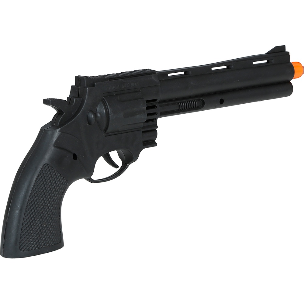 Pistola giocattolo in stile revolver pensata per completare costumi del Far West. Realizzata in PVC leggero e dotata di puntale arancione di sicurezza per identificarla come giocattolo. Ideale per feste a tema, Carnevale e sessioni fotografiche in stile western. Design visivamente realistico che dona impatto al tuo look senza rischi.