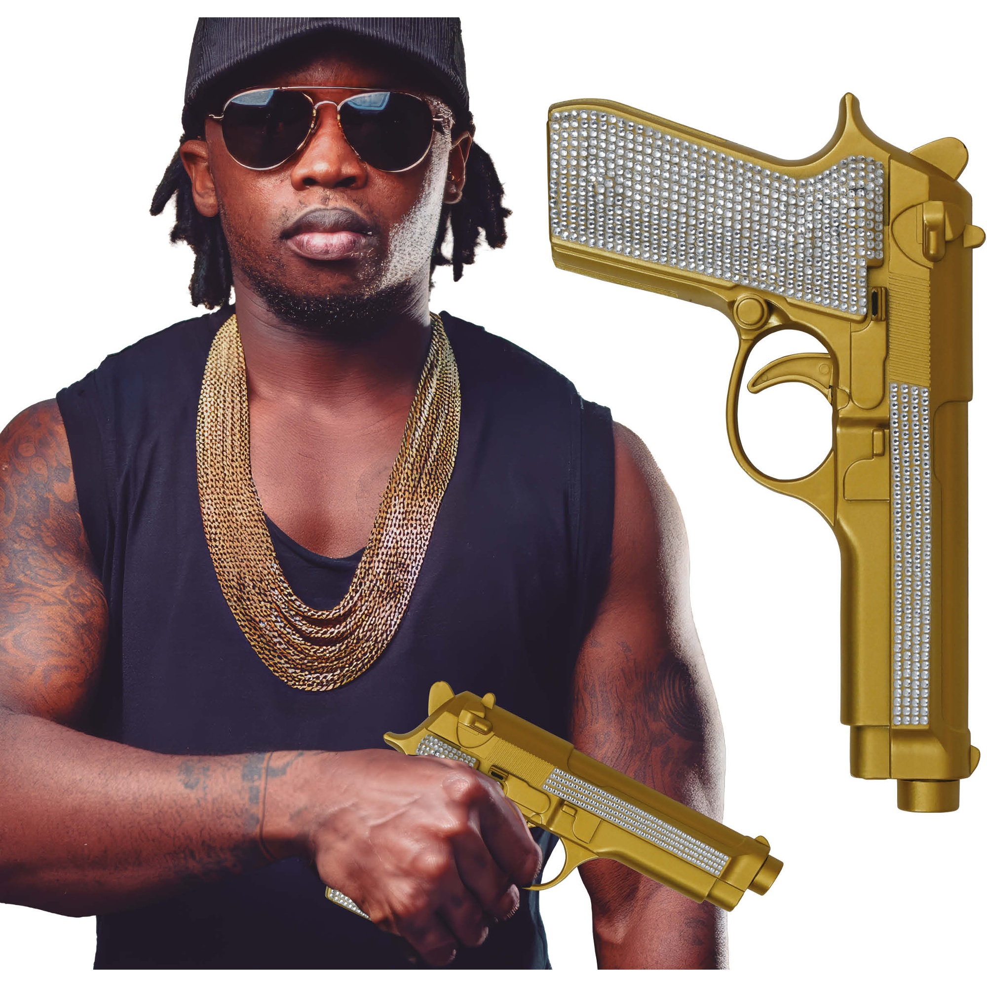 Pistola dorata con strass da 25 cm