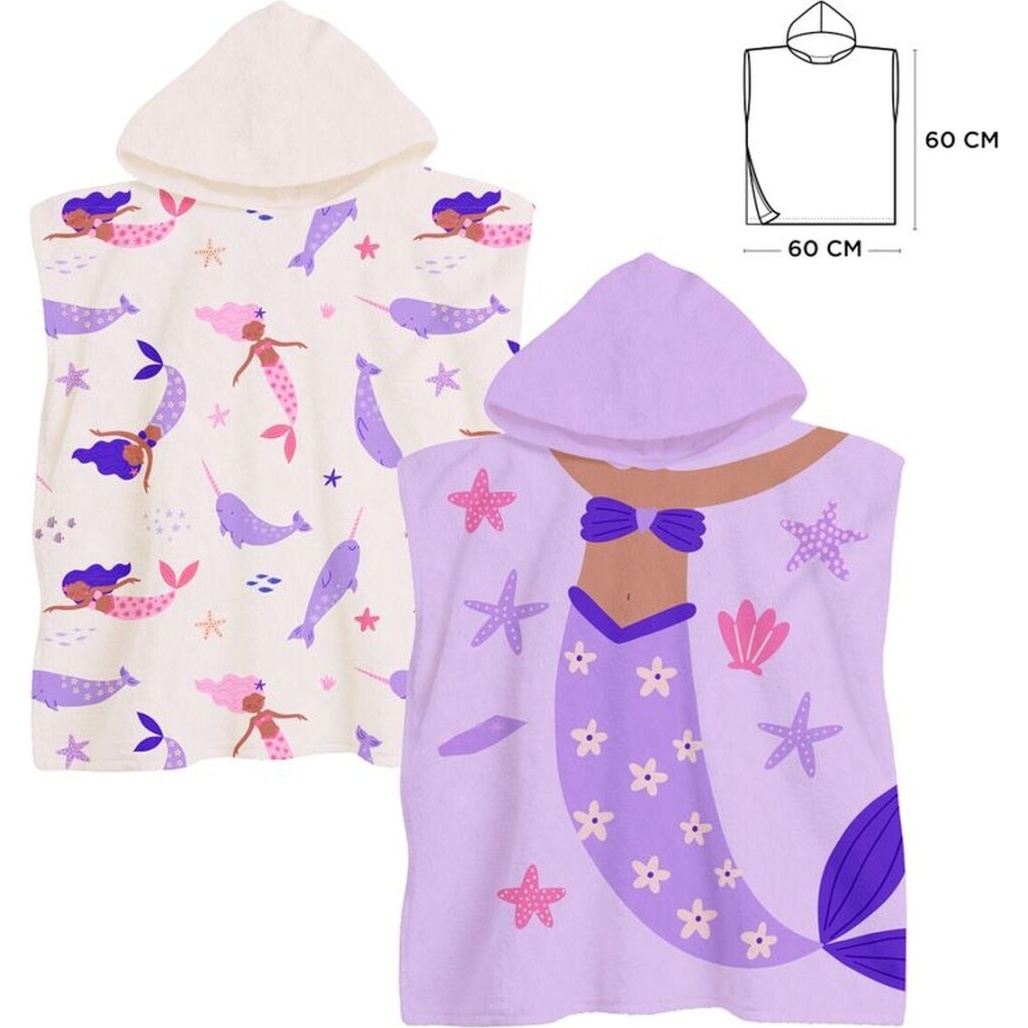 Poncho-asciugamano per bambini con un vivace motivo sirena, pensato per stimolare il gioco e la fantasia.