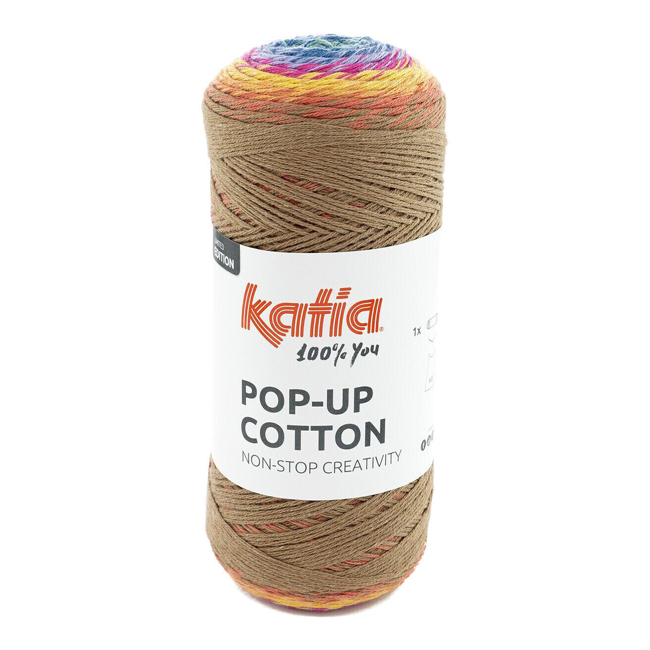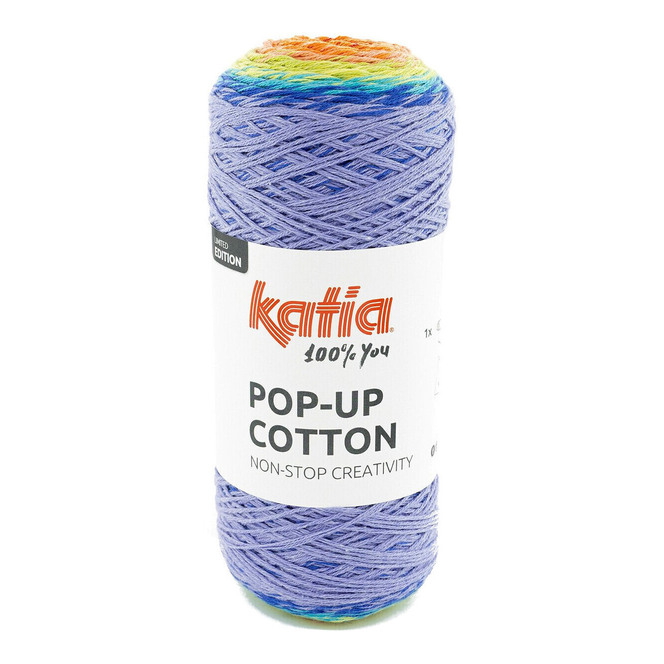 Lasciati sorprendere da Katia Pop-Up Cotton, un filato mouliné con ciclo perfetto e transizione di colore simmetrica e vivace. Con un solo gomitolo puoi realizzare un top da donna o un vestito per bambina.