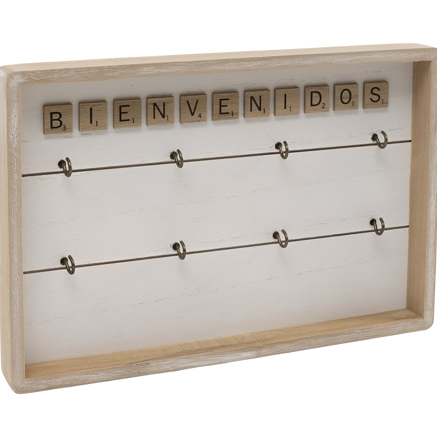 Portachiavi da parete che unisce funzionalità e stile per il tuo ingresso. La scritta "Benvenuti" dona calore e personalità all'entrata; i ganci mantengono le chiavi sempre ordinate e a portata di mano, ideale per famiglie e ospiti.