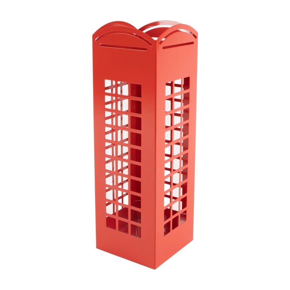 Portaombrelli dall'estetica di cabina telefonica rossa che dona un punto focale originale a ogni ingresso o hall.