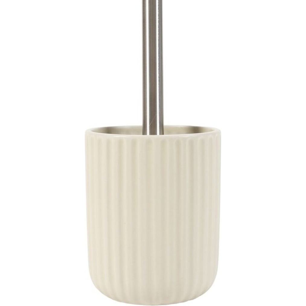 Portascopino in stile nordico con finitura crema e superficie rigata, che dona calore e semplicità al bagno.