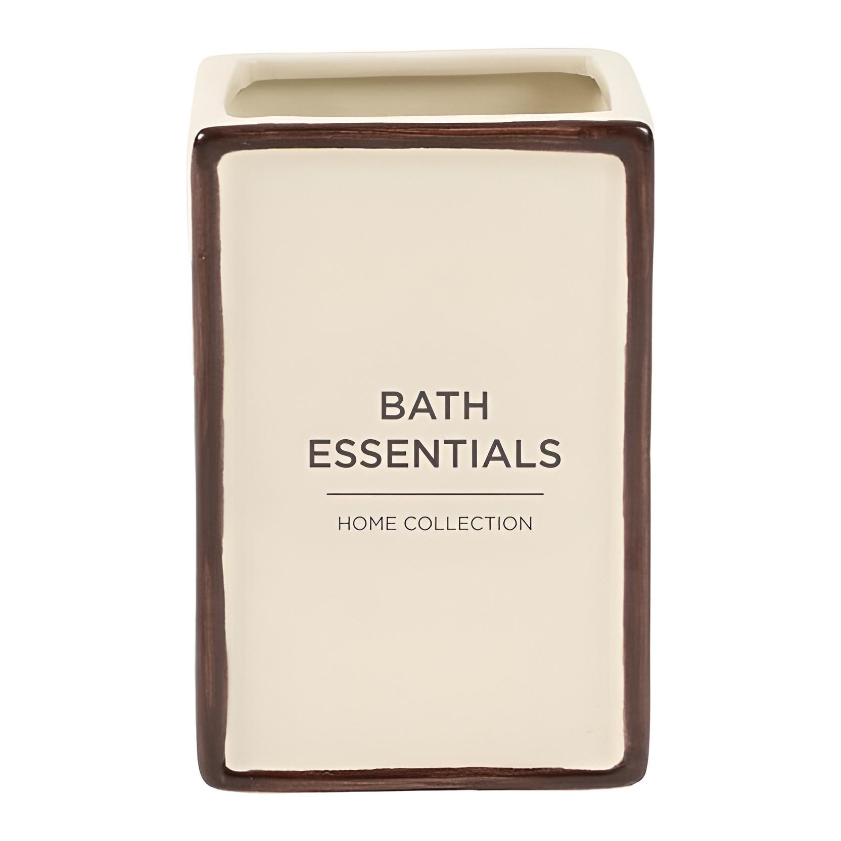 Finitura neutra con serigrafia Bath Essentials per un dettaglio decorativo discreto.