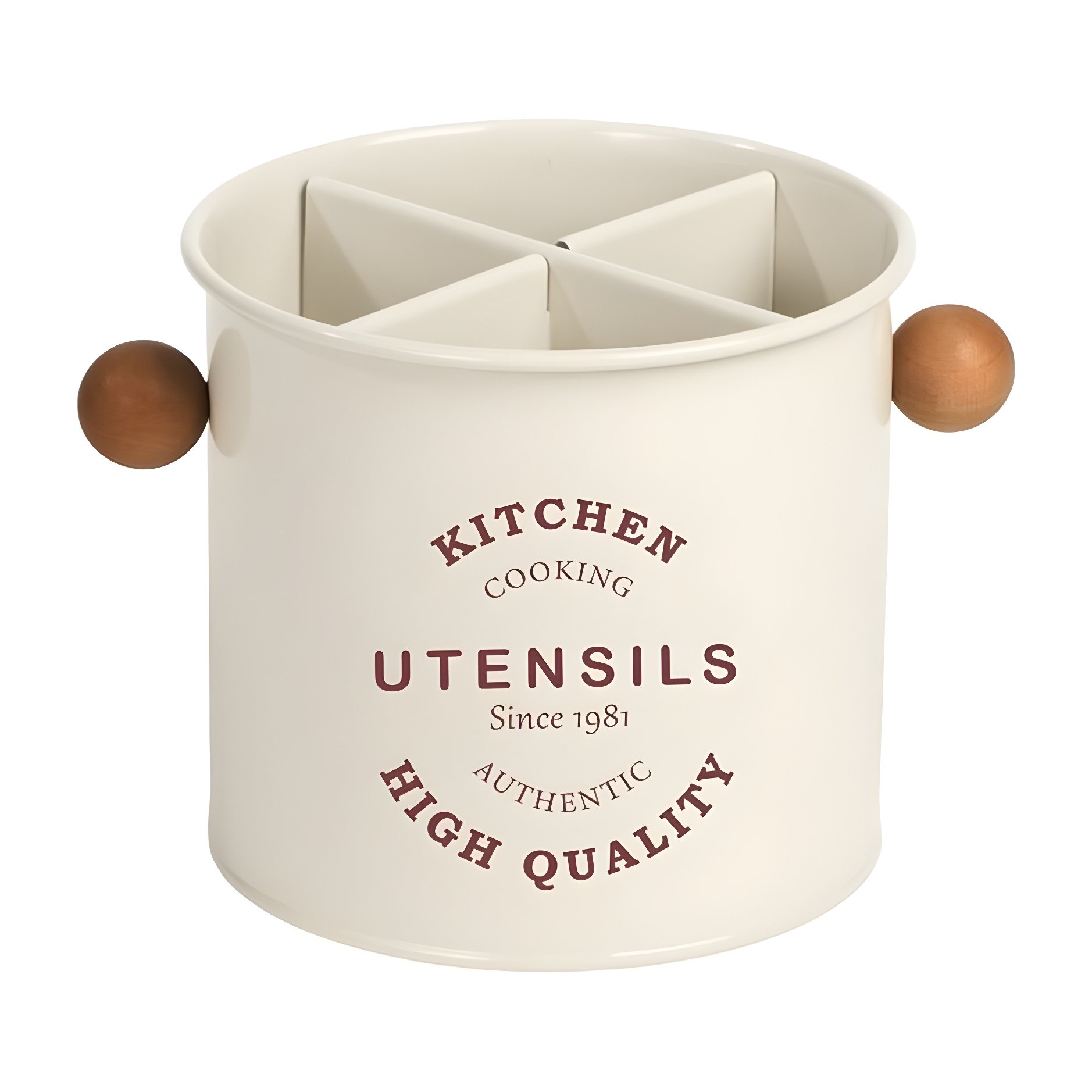 Diviso in 4 scomparti per organizzare spatole, mestoli e utensili da cucina, dotato di maniglie laterali che ne facilitano il trasporto. Il design compatto lo rende ideale per avere gli utensili sempre a portata di mano.
