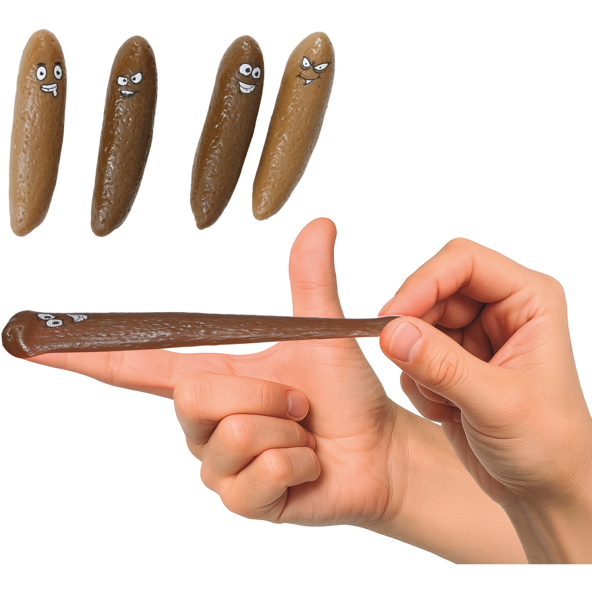 Divertentissima confezione da 4 pupù volanti in lattice con espressioni comiche per scherzi istantanei.