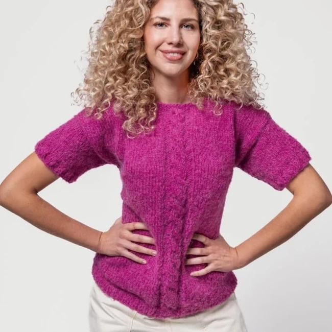 - Maglione senza maniche con treccia centrale. Livello di difficoltà facile.