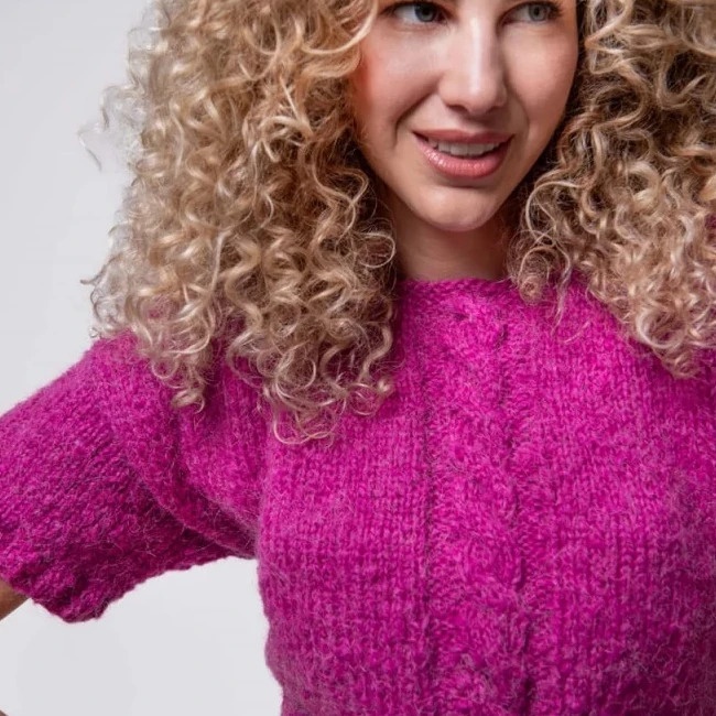 - Cardigan con parte superiore e polsini in punto riso e maniche a sbuffo. Livello di difficoltà intermedio.