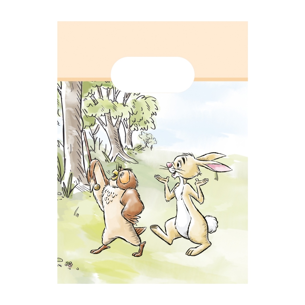 4 pezzi per confezione. Sacchetti di carta con illustrazioni di Winnie the Pooh, Tigro, Pimpi e Ih?Oh in un design ispirato alla natura. Colori tenui e disegni infantili che donano un tocco dolce e allegro a ogni festa. Maniglia a fessura per una presa comoda e una gestione semplice. Carta con certificazione FSC, un'opzione più sostenibile.