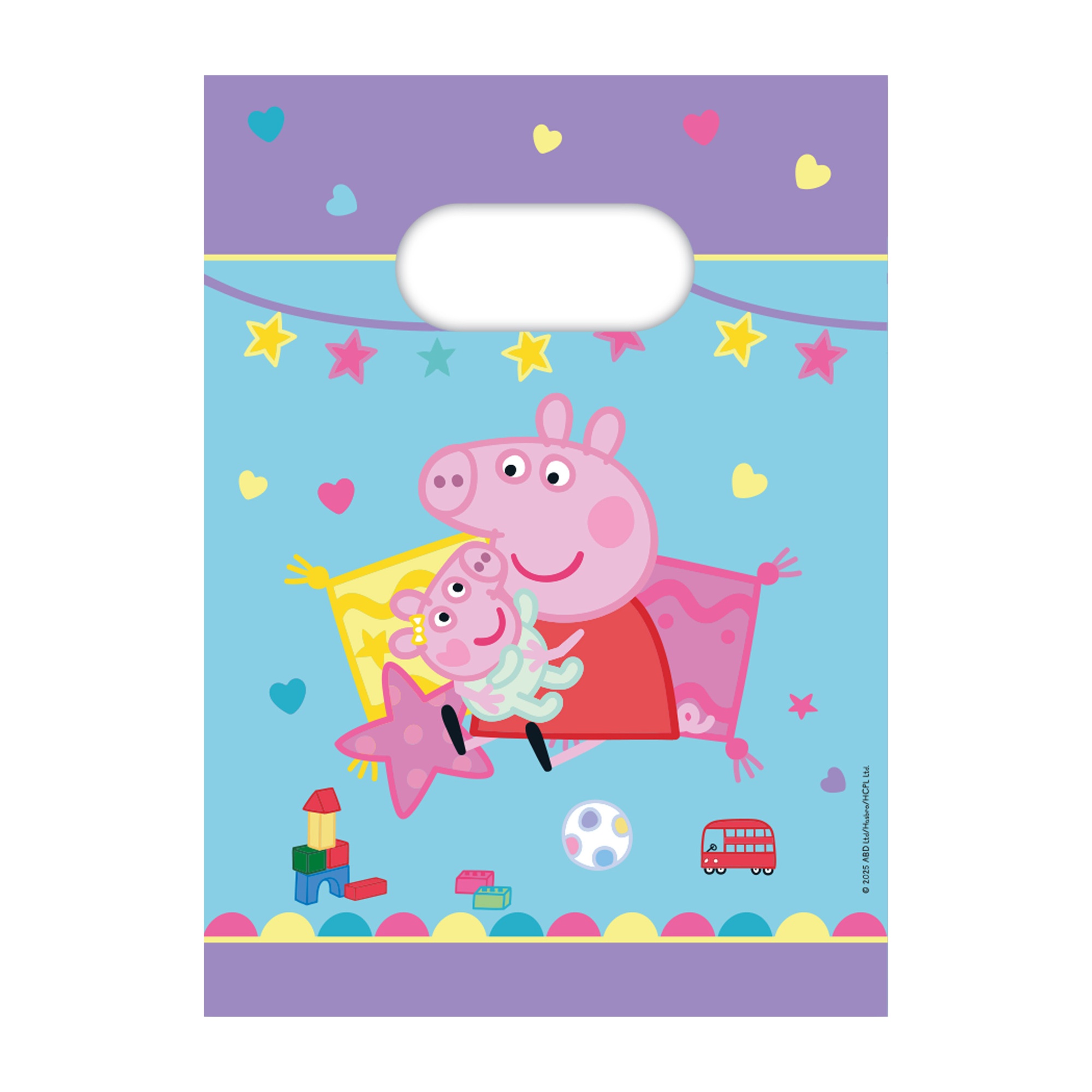 Confezione da 4 sacchetti regalo con il divertente design di Peppa Pig, pensati per aggiungere un tocco di allegria alle feste dei bambini. Colori vivaci e decori teneri che conquisteranno i più piccoli. Maniglia sagomata per portarli con facilità e ampia apertura per inserire caramelle e piccoli pensierini.