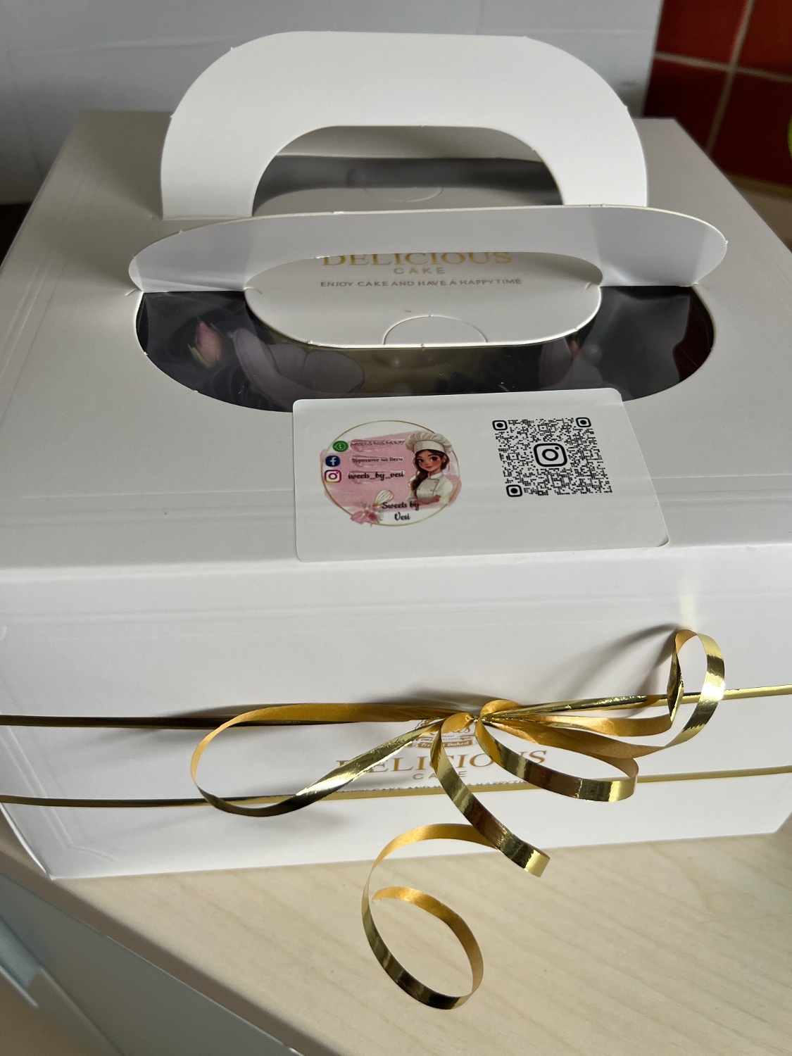 Elegante scatola in cartone rigido, perfetta per trasportare e presentare torte, dolci e altre creazioni di pasticceria.