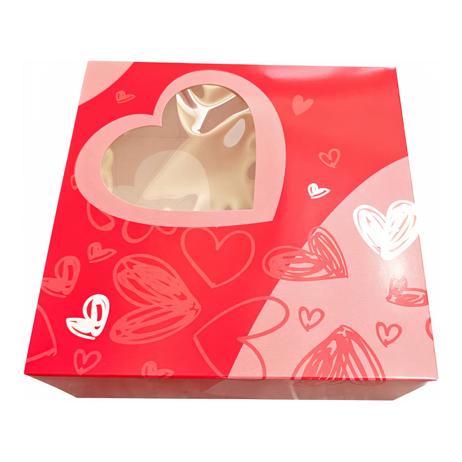 Scatola in cartone dal design originale con finestra a forma di cuore, ideale per trasportare le tue torte a San Valentino.