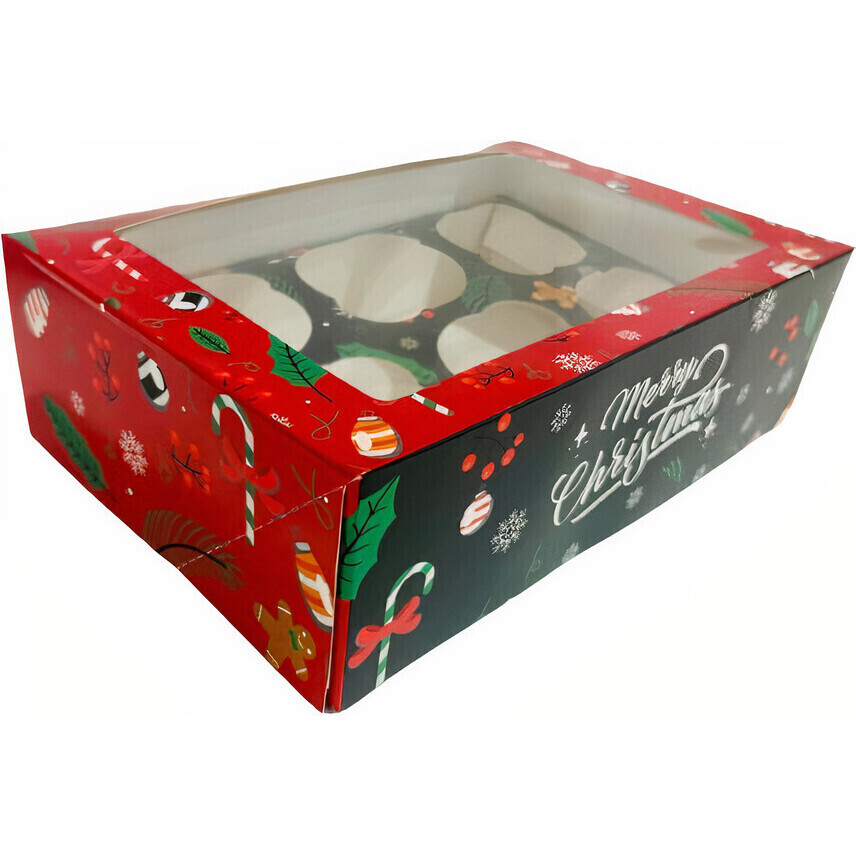 Scatola per 6 cupcakes di Natale Merry Christmas