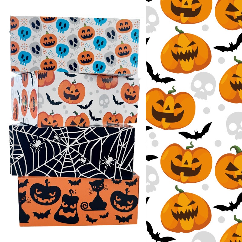 Scatola per dolci con zucche e pipistrelli di 18 x 13,5 x 7,5 cm - Decora - 1 unità