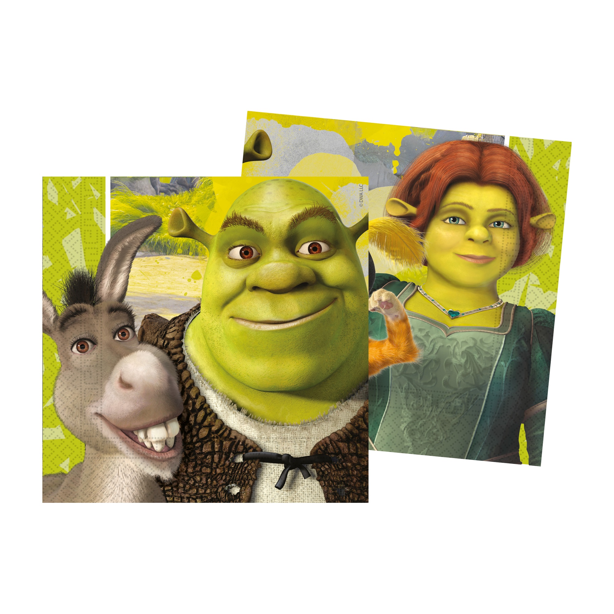 Servillette con licenza ufficiale Shrek, pensate per aggiungere allegria e colore alle feste dei bambini.