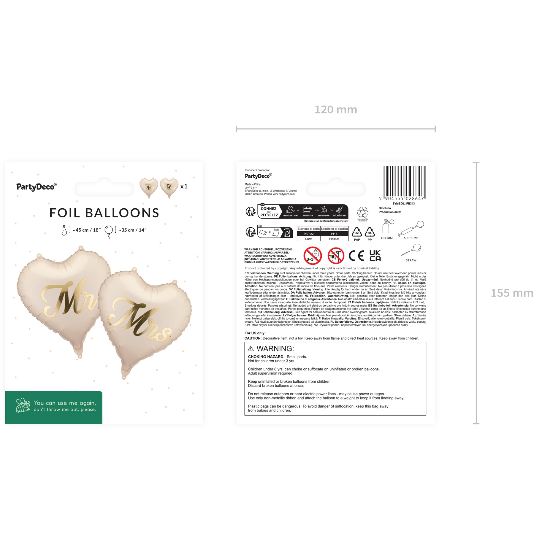 No apto para niños menores de 36 meses: riesgo de asfixia; los globos desinflados o rotos pueden causar asfixia — desechar inmediatamente.