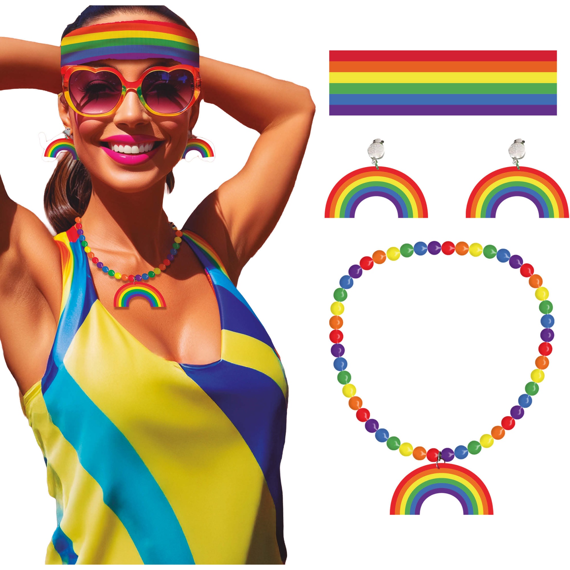 Set di gioielli arcobaleno pensato per dare colore ed energia al tuo look. Presenta un motivo arcobaleno vibrante che risalta durante le celebrazioni Pride e in qualsiasi evento festoso. I pezzi sono studiati per essere vistosi ma confortevoli, da indossare per tutto il giorno senza sforzo. Perfetto come complemento per outfit vivaci o come regalo che trasmette colore e visibilità.