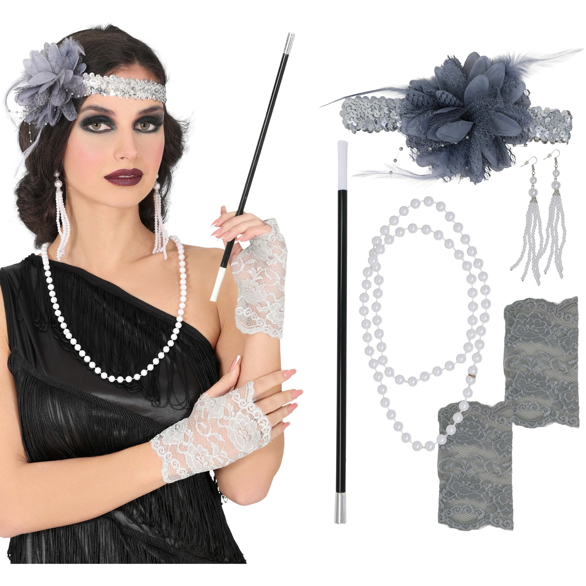 Ottieni un look Charleston autentico con questo elegante set di accessori ispirato agli anni '20. Pensato per aggiungere un tocco di glamour vintage, unisce brillantezza, pizzo e piume per un risultato sofisticato. Pezzi leggeri e confortevoli che valorizzano qualsiasi outfit d'epoca, apportando movimento e stile. Perfetto per completare un abbigliamento retrò in serate a tema, servizi fotografici o occasioni speciali. Materiali sintetici che mantengono lucentezza e forma.