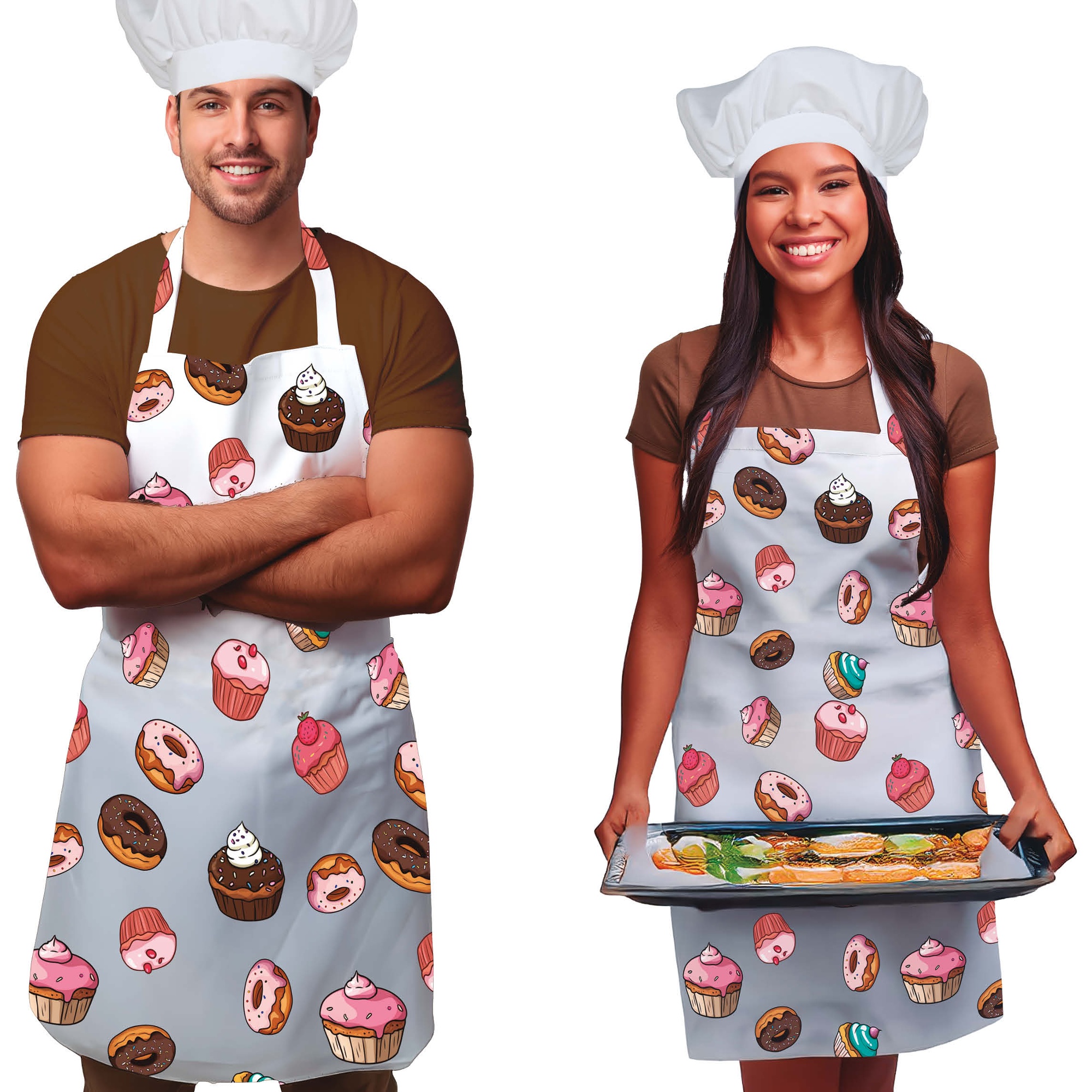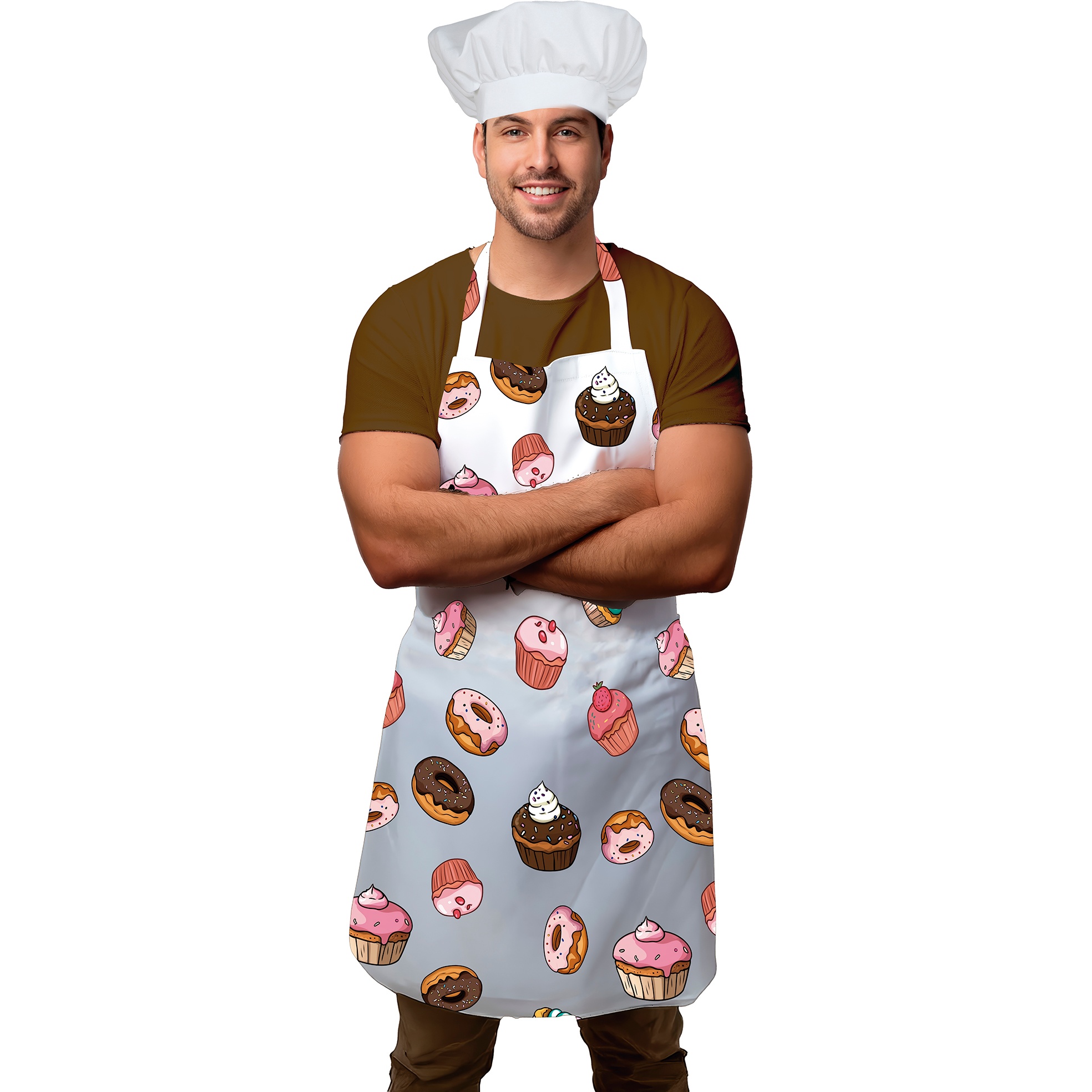 Set grembiule e cappello da chef con motivo cupcakes per adulti