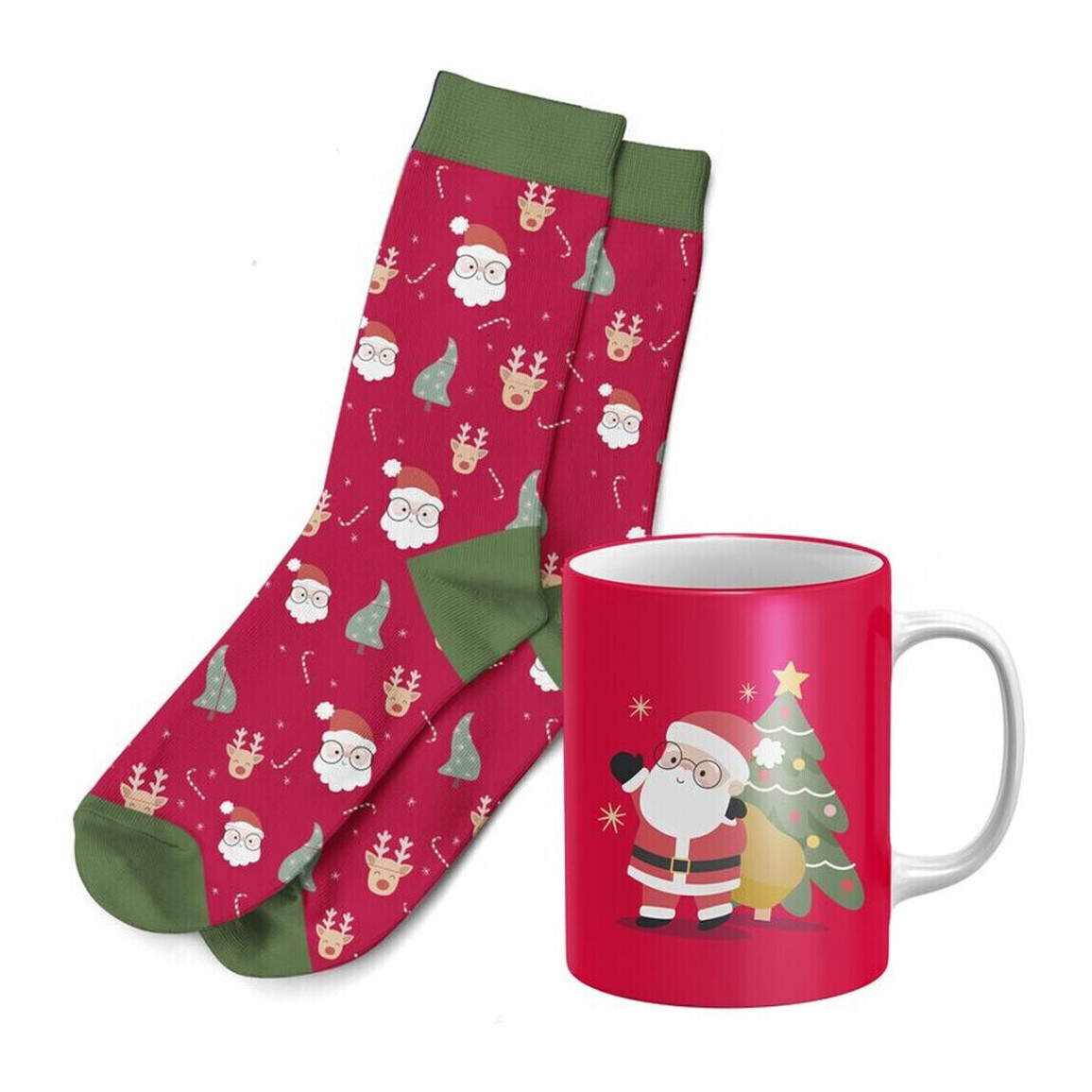 Set regalo di tazza e calzini di Natale Babbo Natale rosso