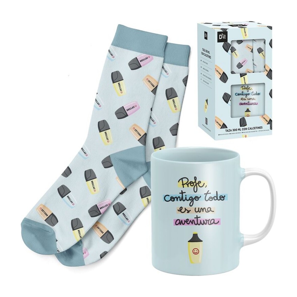 Set regalo tazza e calzini "Prof, con te tutto è un'avventura"