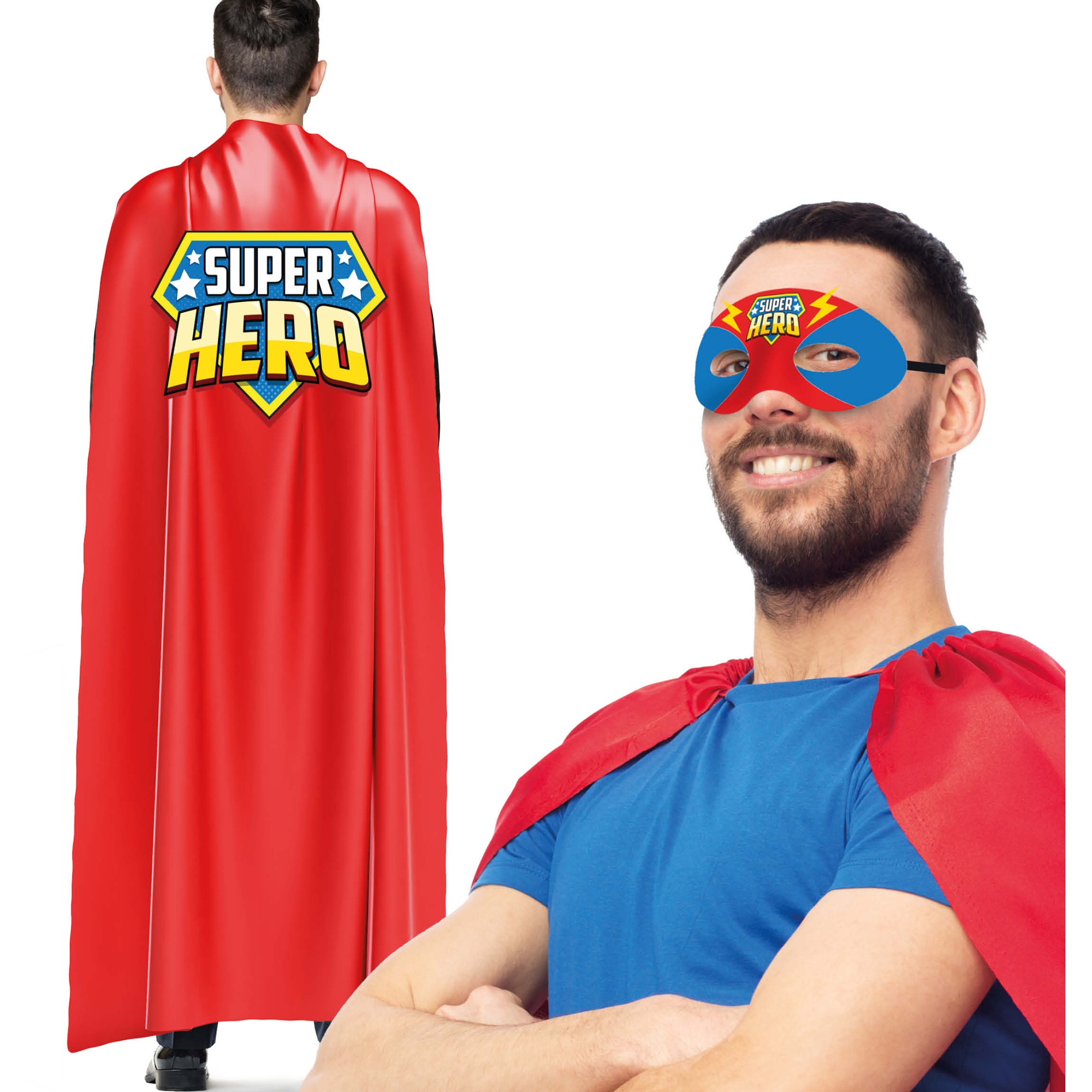 Diventa l'eroe della festa con questo set classico pensato per adulti. Design accattivante in stile supereroe, perfetto per Carnevale, addii al celibato/nubilato ed eventi a tema. Tessuto leggero e piacevole al contatto con la pelle, comodo da indossare per tutta la durata della festa. Vestibilità confortevole e applicazione rapida per entrare in azione in pochi secondi. Riutilizzabile e semplice da mantenere pulito tra un utilizzo e l'altro.