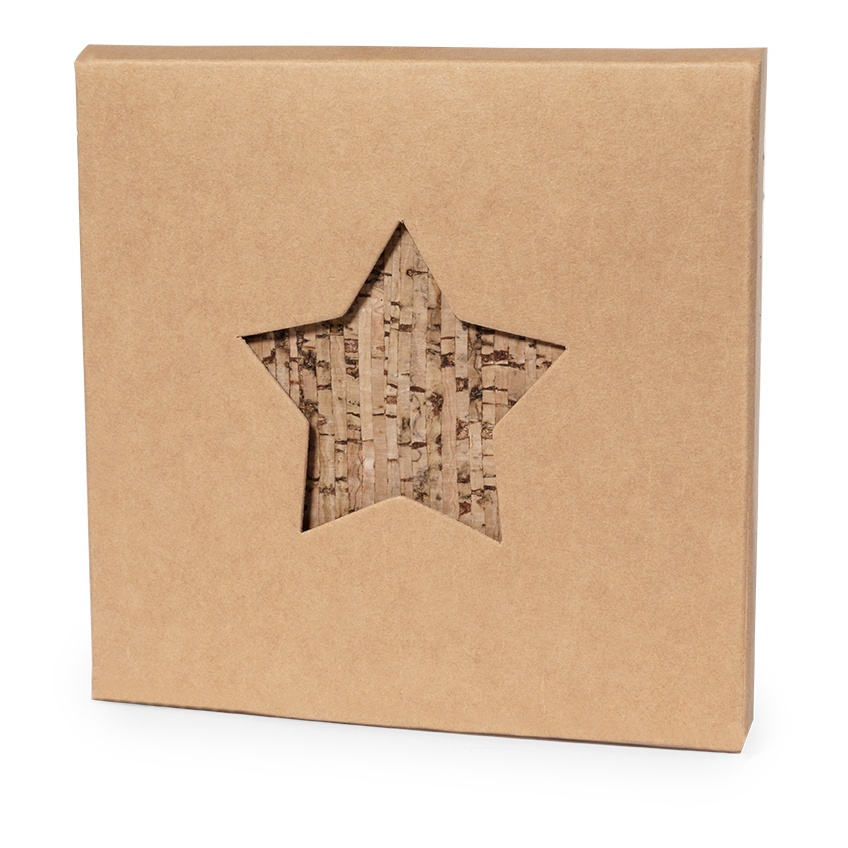 - Set presentato in una scatola di design in cartone kraft con una stella traforata.