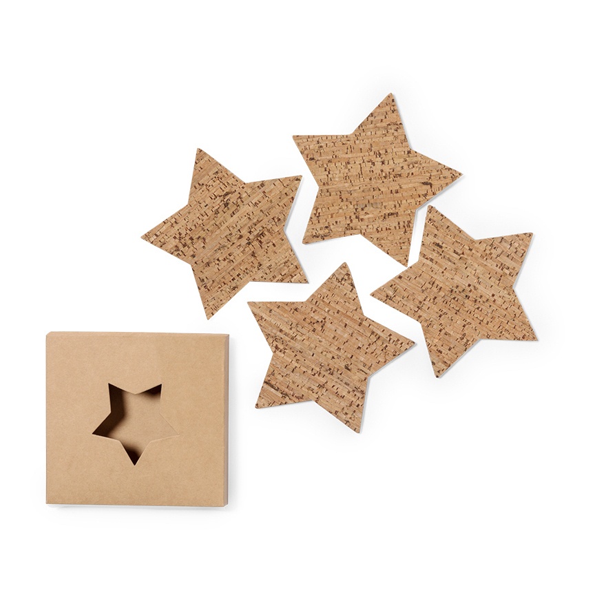 - Set di 4 sottobicchieri a forma di stella realizzati in sughero naturale.