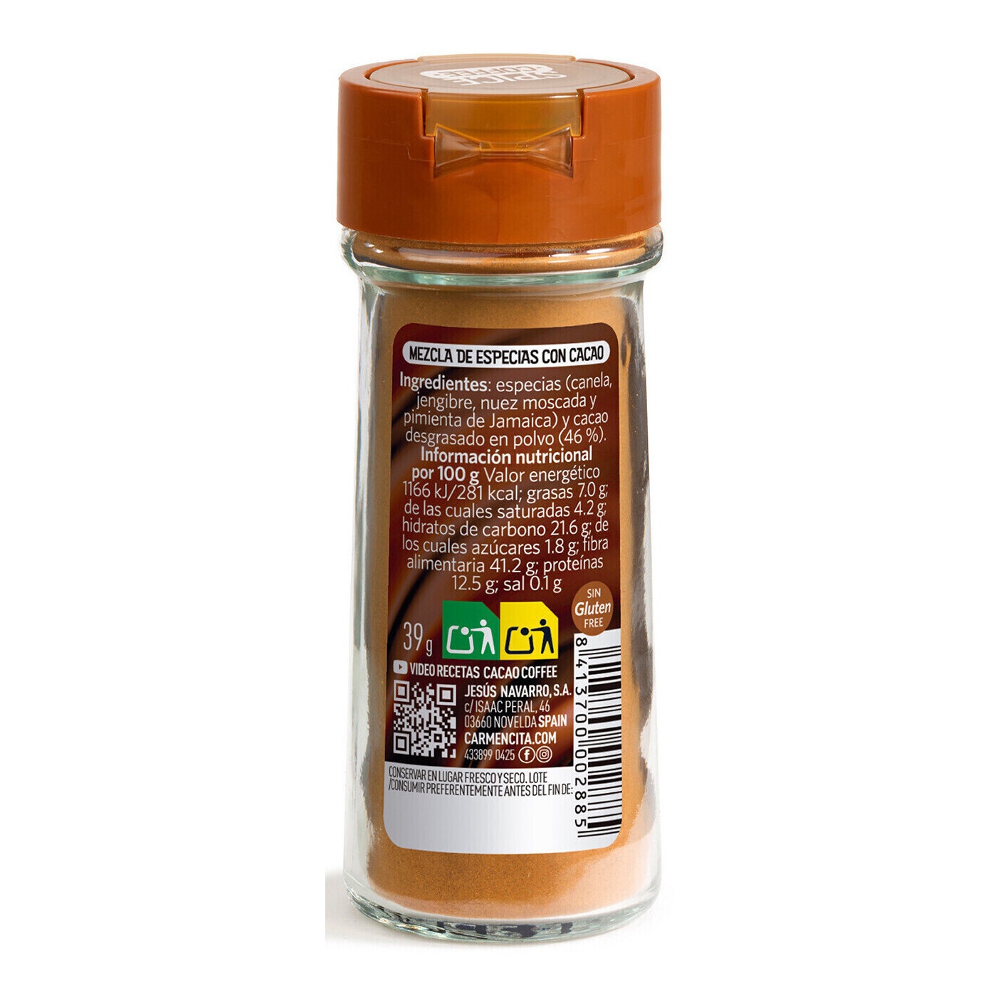 Ingredienti: spezie (cannella, zenzero, noce moscata e pepe della Giamaica) e cacao magro in polvere (46%).