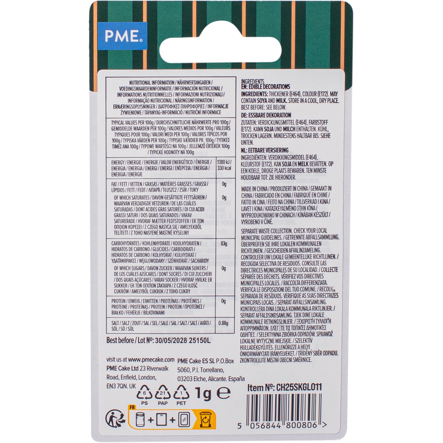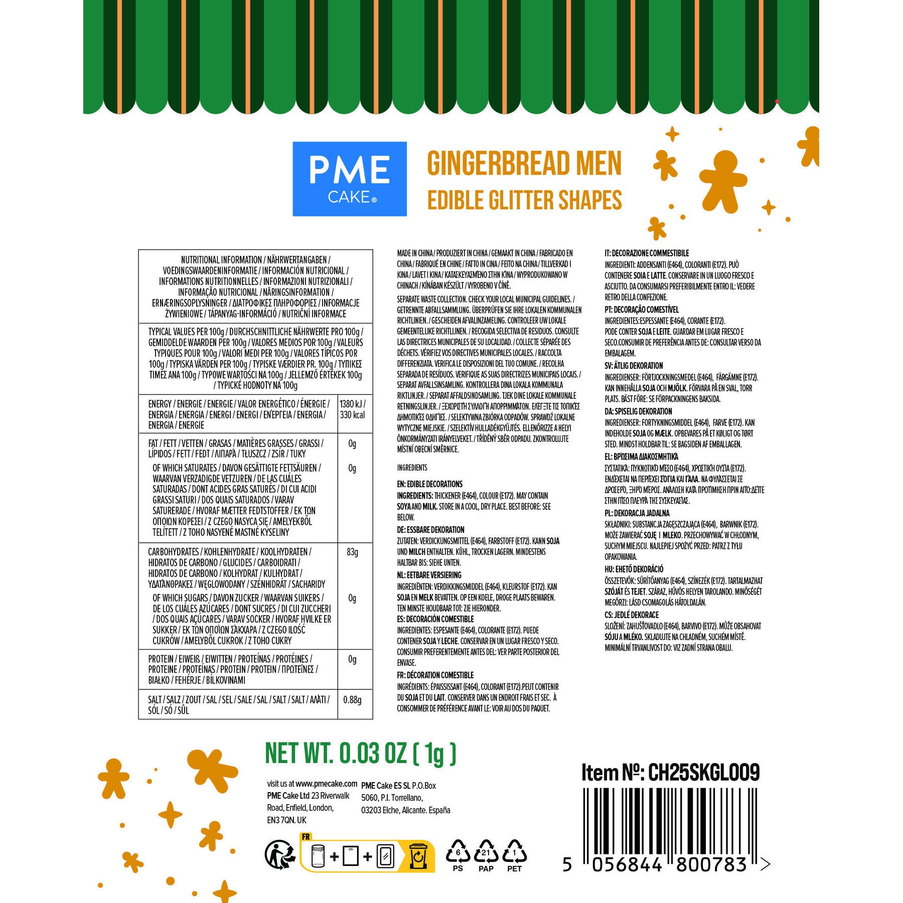 Sprinkles di uomo di pan di zenzero glitter da 1 g - PME