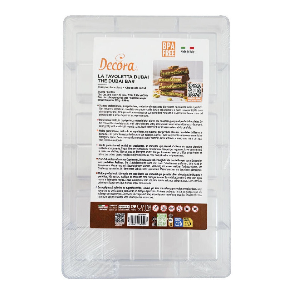 Stampo per tavolette di cioccolato di 15 x 7 x 2 cm - Decora - 3 cavità