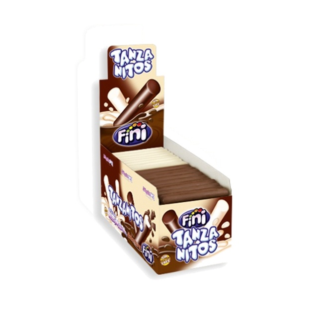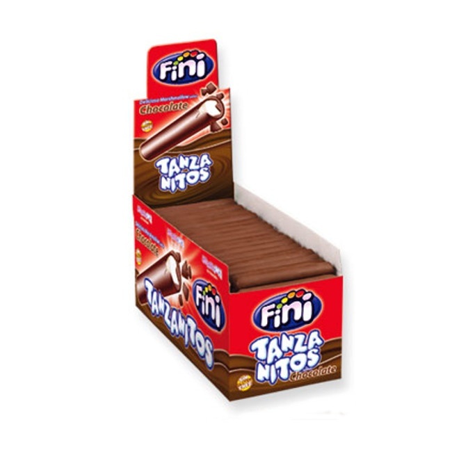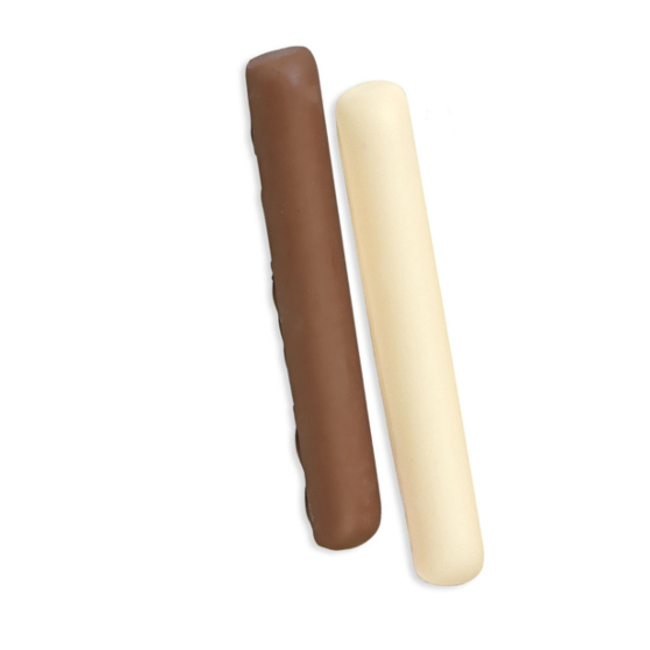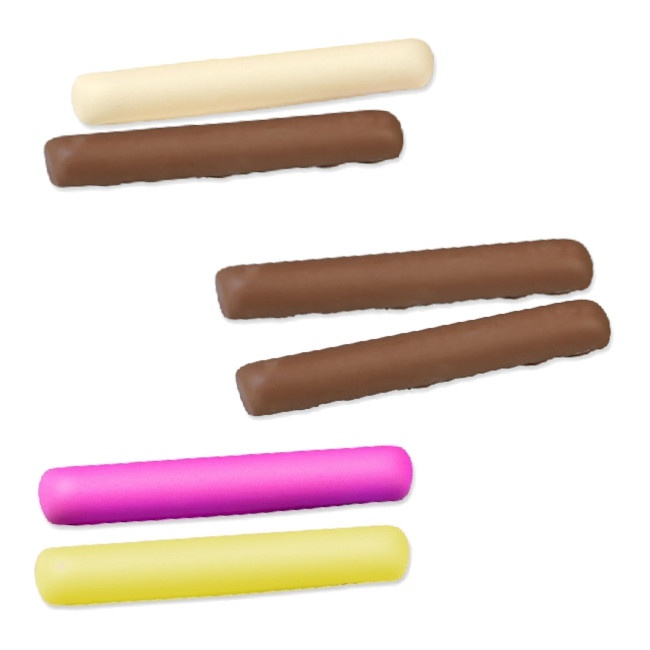 Bastoncini di marshmallow ricoperti da uno strato di cioccolato.