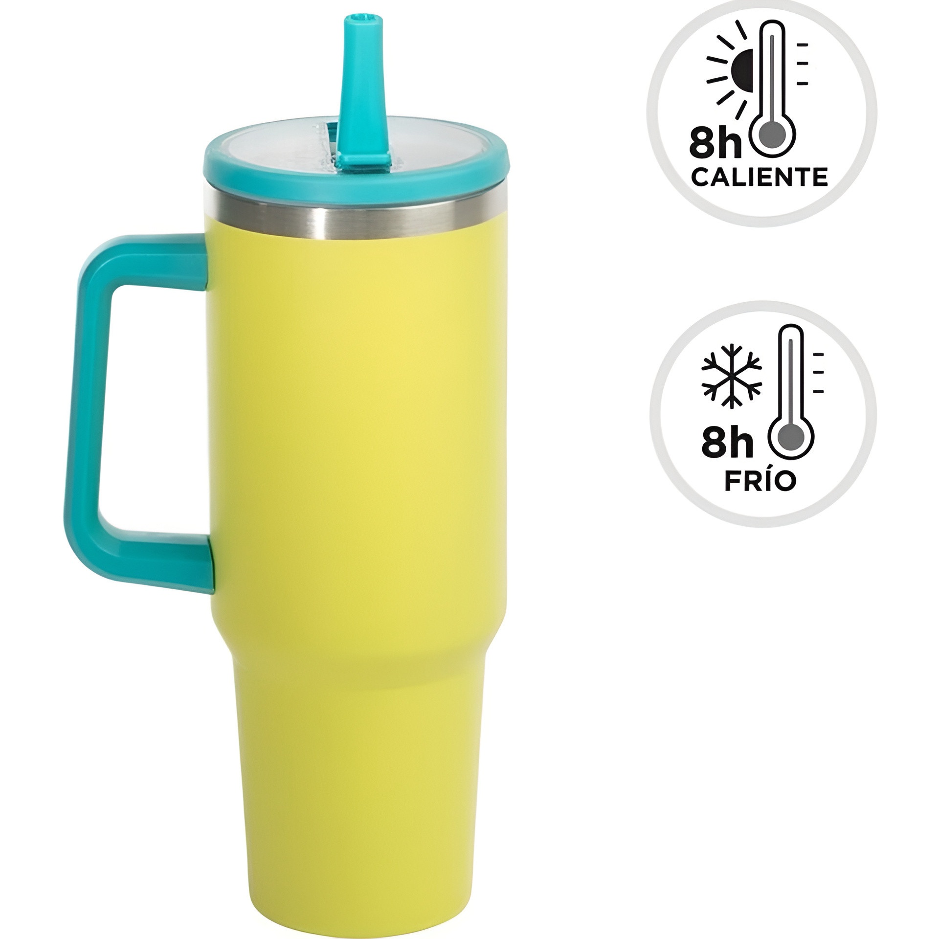Goditi le tue bevande con una tazza termica dal design moderno e dal colore vivace. Il manico ergonomico e il coperchio con cannuccia rendono semplice bere in movimento senza complicazioni. La finitura vistosa aiuta a individuare il tuo bicchiere rapidamente e dona un tocco di vivacità alla giornata. Perfetta da portare al lavoro, in viaggio o per attività all'aperto.