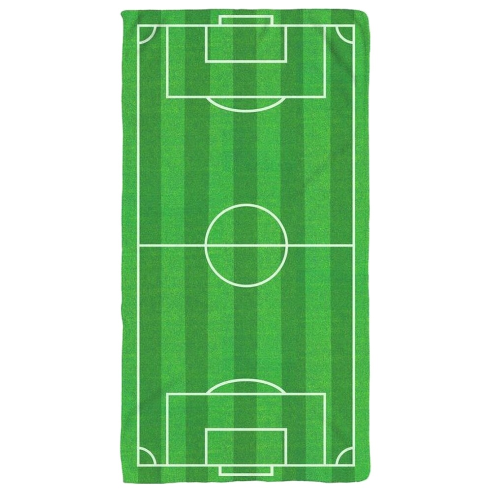 Telo da spiaggia con stampa che riproduce un campo da calcio, perfetto per chi vuole portare la propria passione in spiaggia o in piscina.