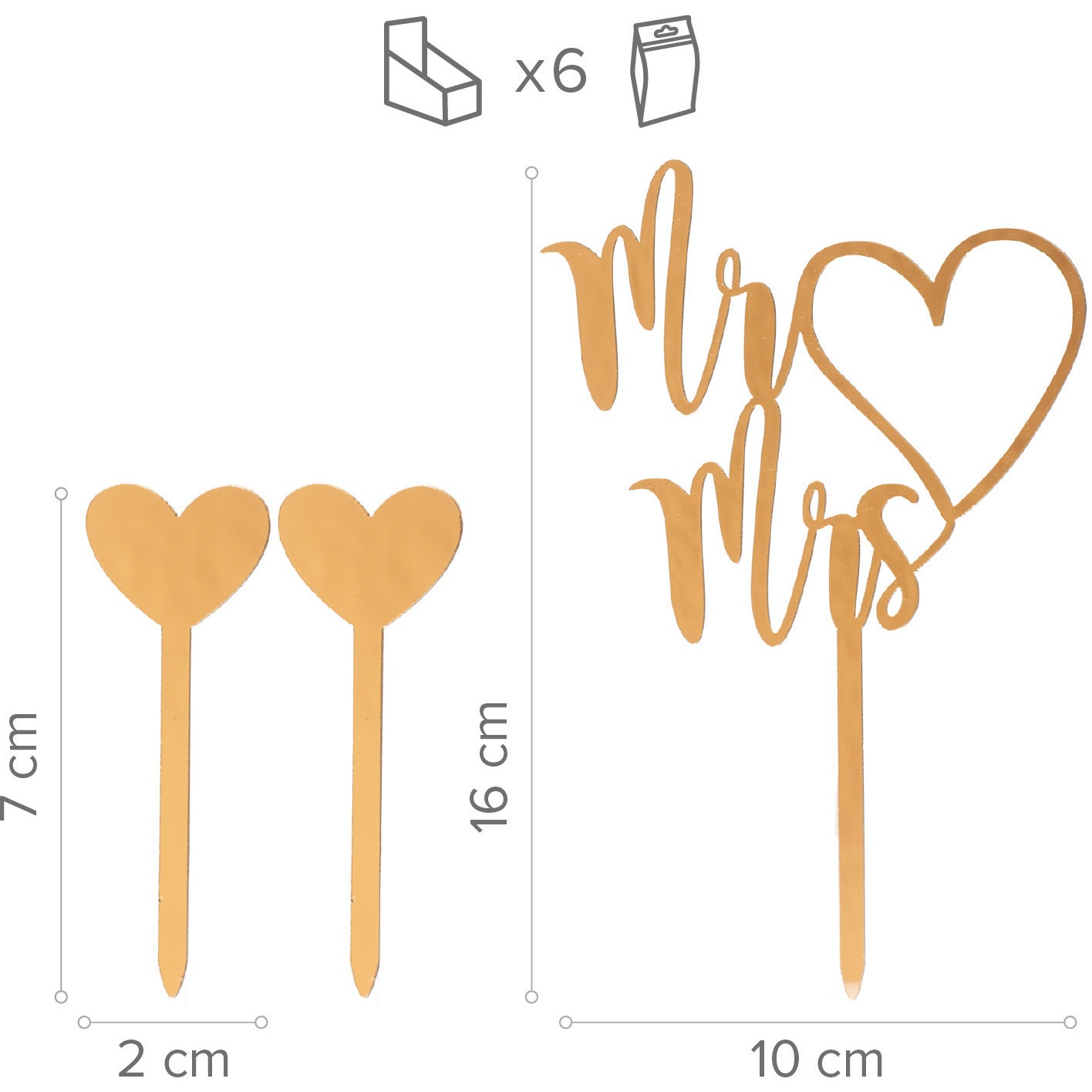 Topper per torta di Mr and Mrs e cuori - 3 pezzi