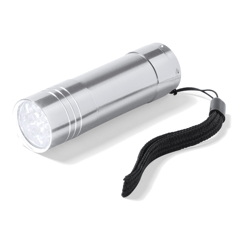 - Corpo resistente in alluminio, pulsante protetto con rivestimento di gomma resistente e laccetto per il trasporto.