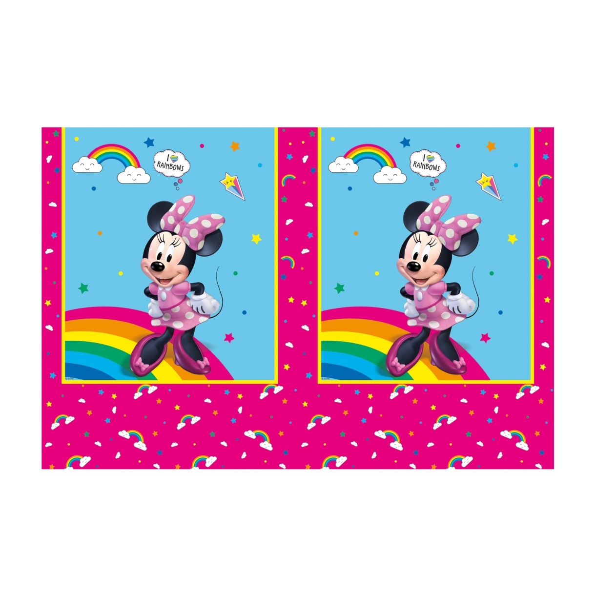 Tovaglia decorativa con l'iconico design di Minnie Mouse e arcobaleni, che aggiunge colore e allegria ai tavoli dei bambini.