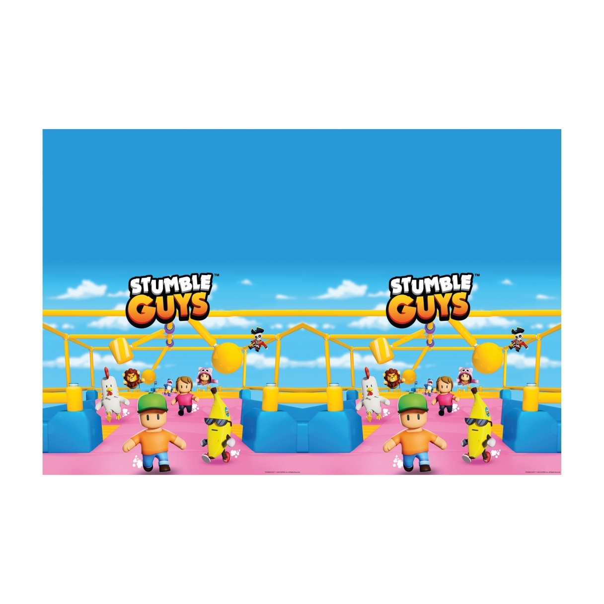 - Stampa ufficiale con i personaggi di Stumble Guys per una decorazione a tema immediata.