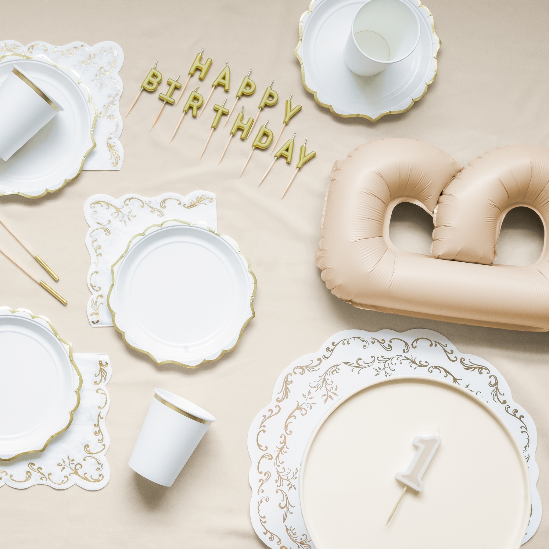 - Tovagliette individuali monofacciali in bianco con decorazione dorata.