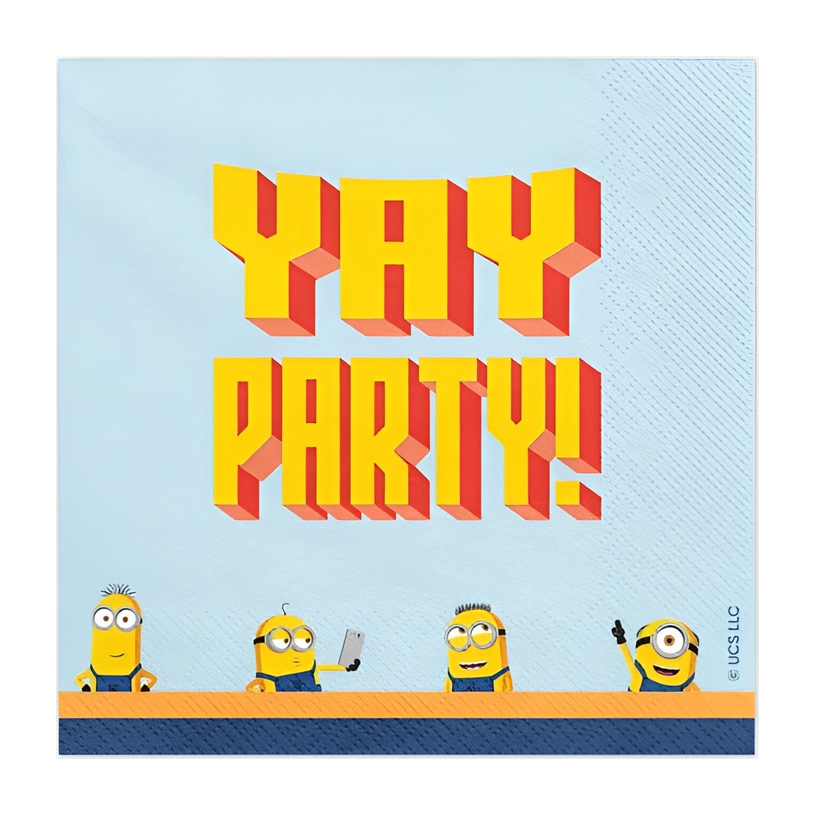 Tovaglioli di carta con gli iconici Minions e la scritta Yay Party! nei toni del blu e del giallo. Design vivace che conferisce un tocco divertente e riconoscibile alla tavola. A due veli per maggiore resistenza e una sensazione piacevole al tatto. Dimensioni: aperti 33 x 33 cm; piegati 16,5 x 16,5 cm. Confezione pratica da 20 pezzi.