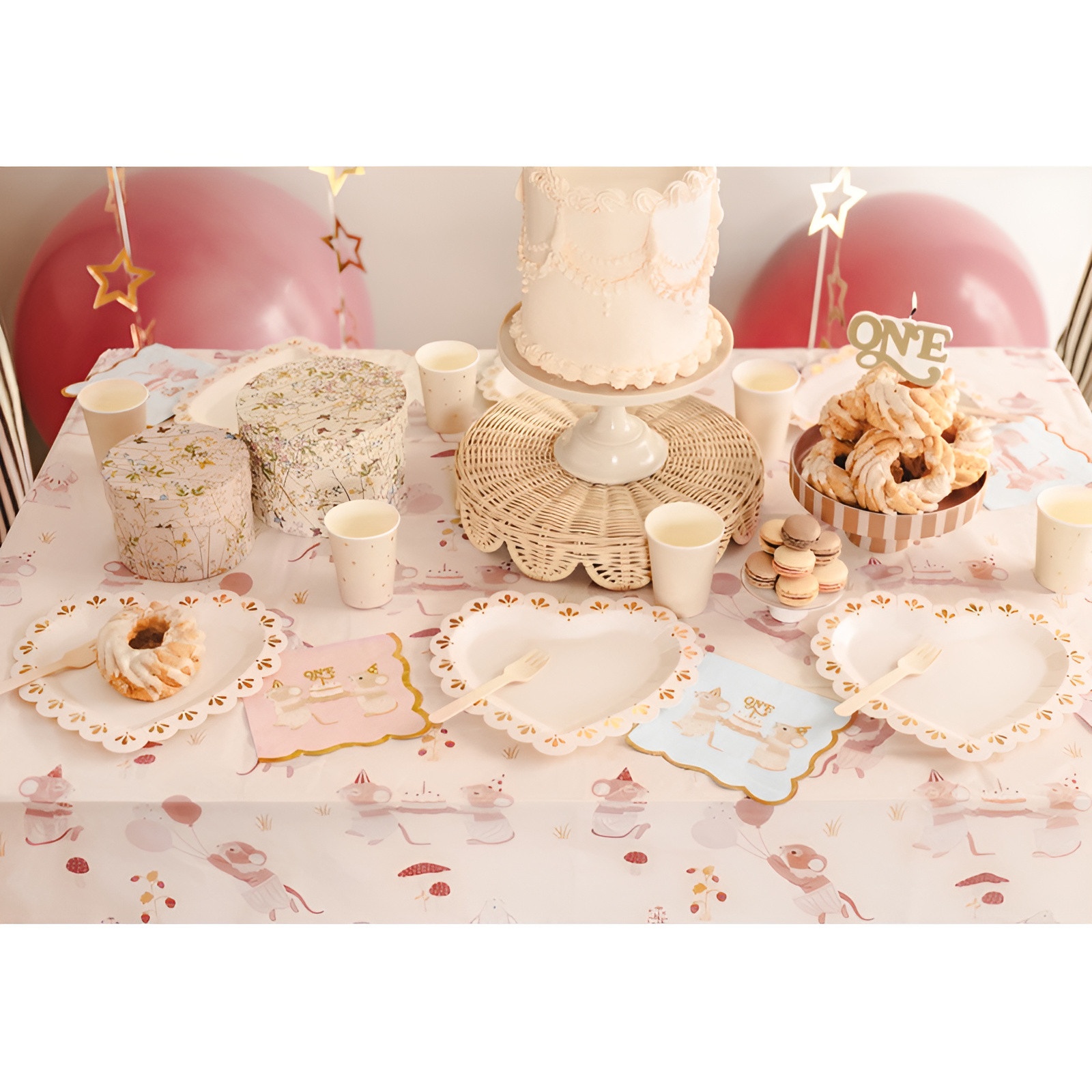 - Delizioso motivo infantile: topolini e la scritta "ONE" per una tavola da primo compleanno elegante.
