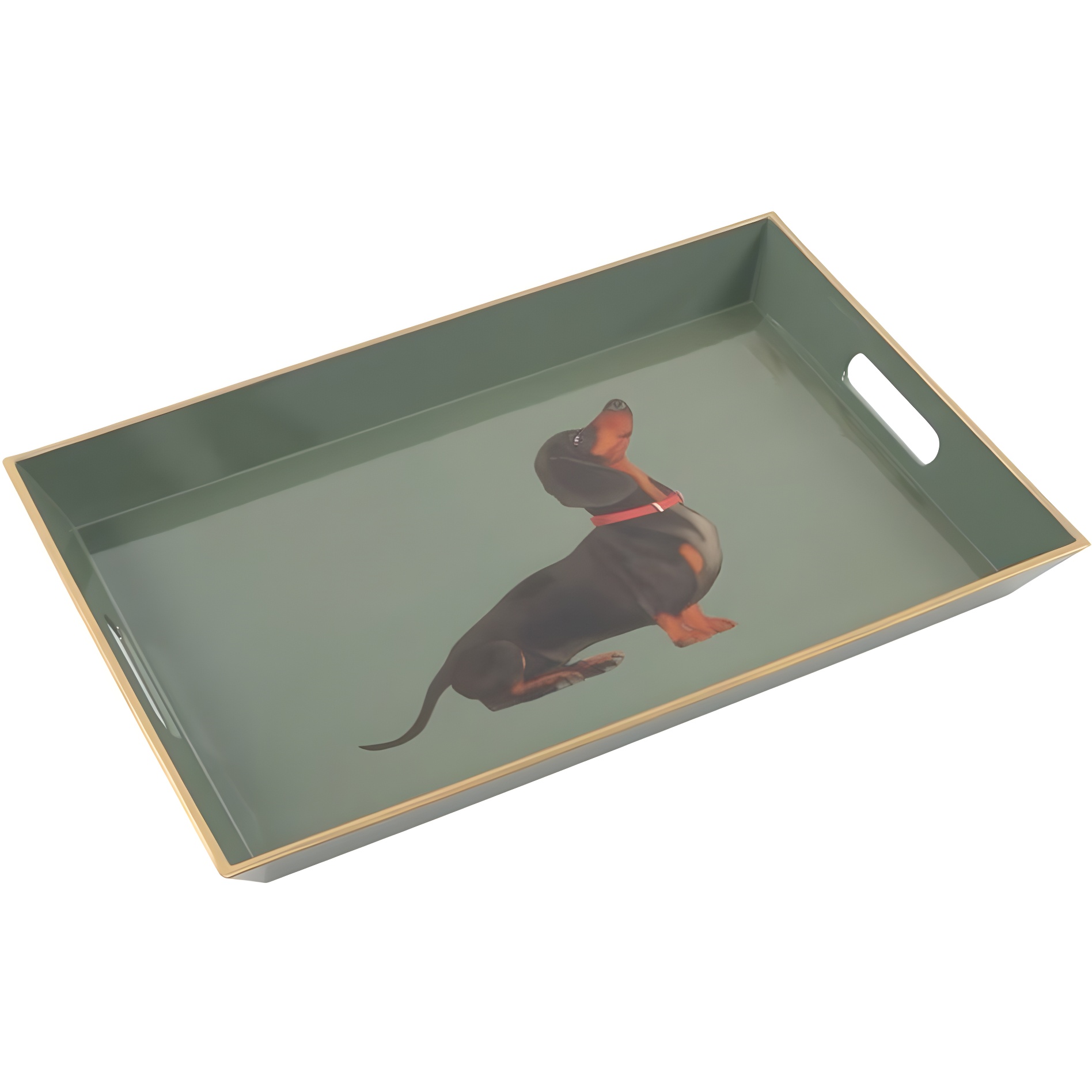 Elegante vassoio decorativo con illustrazione di bassotto, pensato per gli amanti dei cani.